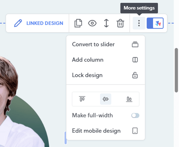 Edit mobile design pulls up the mobile preview and the mobile Width & Spacing options for an easy way to make sure your mobile view is looking as good as the desktop.