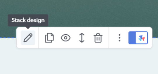 Starting from the left, if you select Stack design (pencil icon) you will open up a familiar modal on the right hand side with your stack specific design options such as Stack Background, Column Settings, and Width & Spacing.