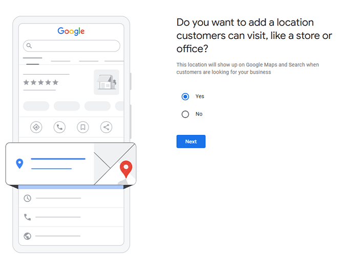 3. Do you want to add a location customers can visit, like a store or office?