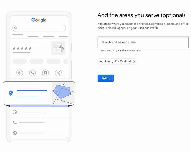 If you are a mobile business you will want to select all the areas within your service area. Having more specific areas like Orewa rather than broad areas like Auckland or New Zealand are more beneficial.